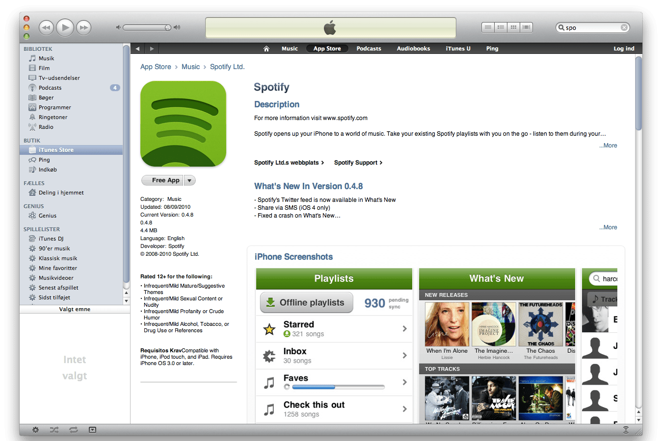 10. du går nu igen ind i din svenske itunes store og søger efter spotify og klikker på “Free” igen for at download. Download og sync med din iphone…