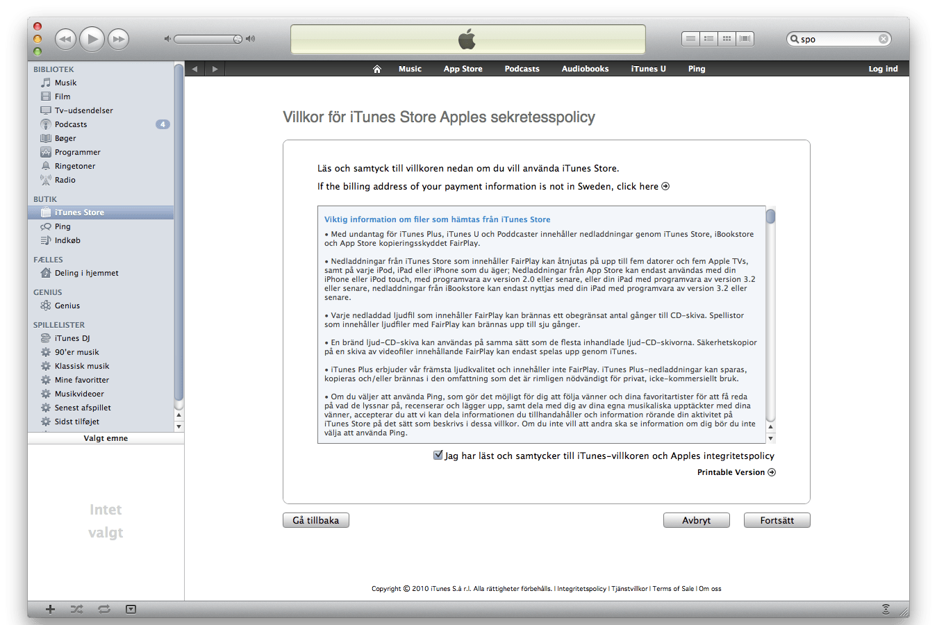 5. itunes spørger evt. om du vil skifte til den svenske itunes store og du klikker ja/ok.