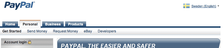 1. Gå ind på www.paypal.com og vælg “Sweden” i sprog og english i language. klik på Sign Up. VIGTIGT at du vælger sweden eller virker det ikke med betalingen!